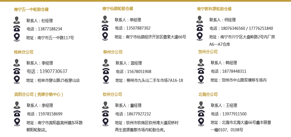 本公司是廣西區(qū)內(nèi)的輪胎批發(fā)及零售商,獨(dú)家代理世界及國(guó)內(nèi)眾多知名品牌輪胎:德國(guó)大陸馬牌輪胎(世界第四品牌),美國(guó)庫珀輪胎(世界第八品牌)杭州中策朝陽(中國(guó)第一品牌),杭州中策好運(yùn)(中國(guó)第二品牌),無錫紅豆、赤兔馬、千里馬,等品牌。在廣西區(qū)內(nèi)有眾多集團(tuán)客戶,主要為中國(guó)鋁業(yè)股份有限公司平果分公司、廣西晟宇通物流有限公司、南寧市平樂行物流有限公司、柳州恒達(dá)巴士股份有限公司、廣西欽州國(guó)際集裝箱碼頭有限公司、廣西盛達(dá)混凝土有限公司、火車站物流車隊(duì)、區(qū)內(nèi)部分快運(yùn)車隊(duì)等的輪胎專用供應(yīng)商。多年以來,被南寧市工商局授予“誠(chéng)信?維權(quán)承諾單位”、“消費(fèi)者信得過單位”以及“南寧市第一次全國(guó)經(jīng)濟(jì)普查先進(jìn)集體單位”。