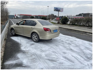 演練模擬成萬方向K110+500處因冰雪天氣影響,路面出現(xiàn)積雪結冰,導致車輛行駛中打滑側溜迫停,造成交通路塞。參演單位按照演練方案快速集結,迅速組織人員裝備,趕赴事發(fā)地點,有序實施交通管制,設置交安設施,實施緊急救援,清理路面障礙,疏散滯留車輛,消除安全隱患,恢復車輛通行。